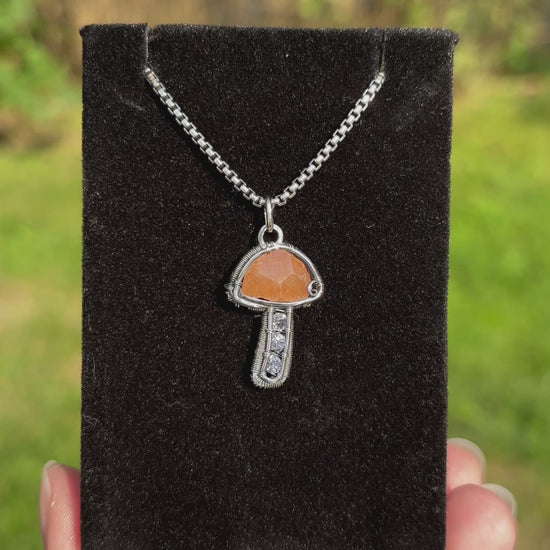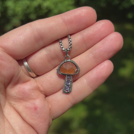 Hand-fabricated & wire-wrappped pendant featuring Hessonite Garnet and Tanzanite in oxidized sterling silver.