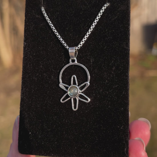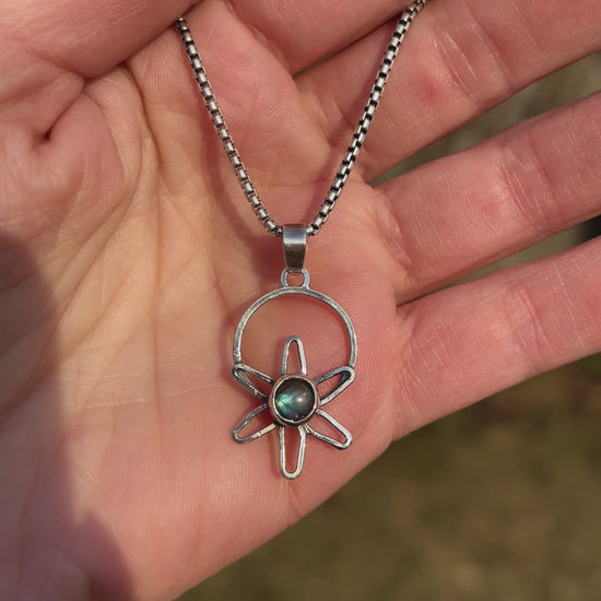 Hand-fabricated pendant featuring Labradorite in oxidized sterling silver.