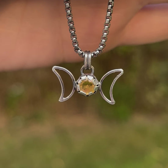 Hand-fabricated pendant featuring Yellow Sapphire in oxidized sterling silver.